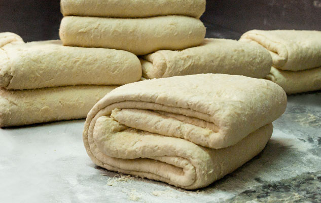 reposada y laminada, se infla y dora en el horno para ofrecer un postre